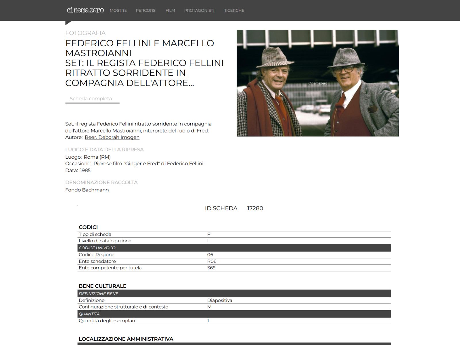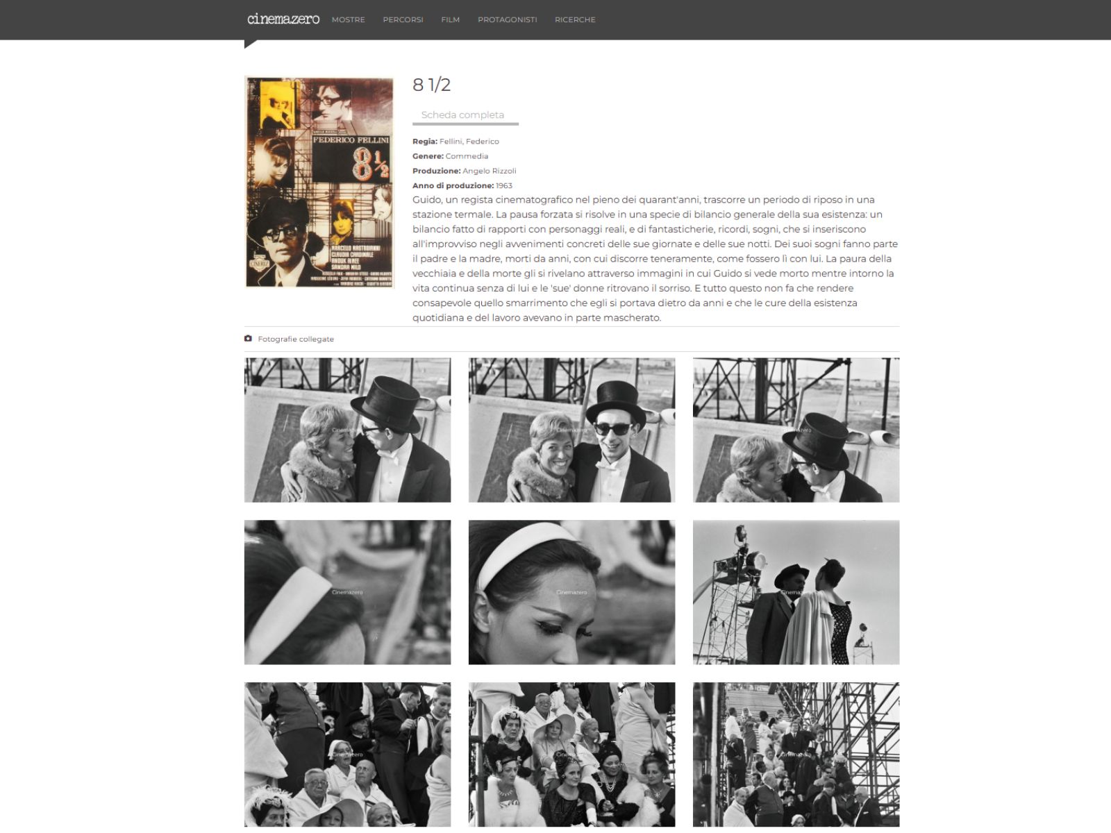 - Percorsi tematici, che guidano la consultazione con filoni narrativi e critici, mettendo in relazione materiali diversi (fotografie, locandine, video) attorno a un tema, un autore, una rassegna o un periodo storico;