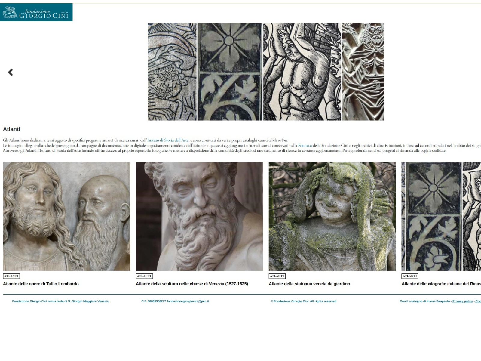 È seguito la pubblicazione del sito Atlanti, una piattaforma tematica interamente dedicata ai singoli atlanti di ricerca prodotti dalla Fondazione. Ogni atlante è corredato da un proprio catalogo consultabile, che consente agli utenti di accedere facilmente a contenuti eterogenei ma organizzati secondo criteri scientifici.