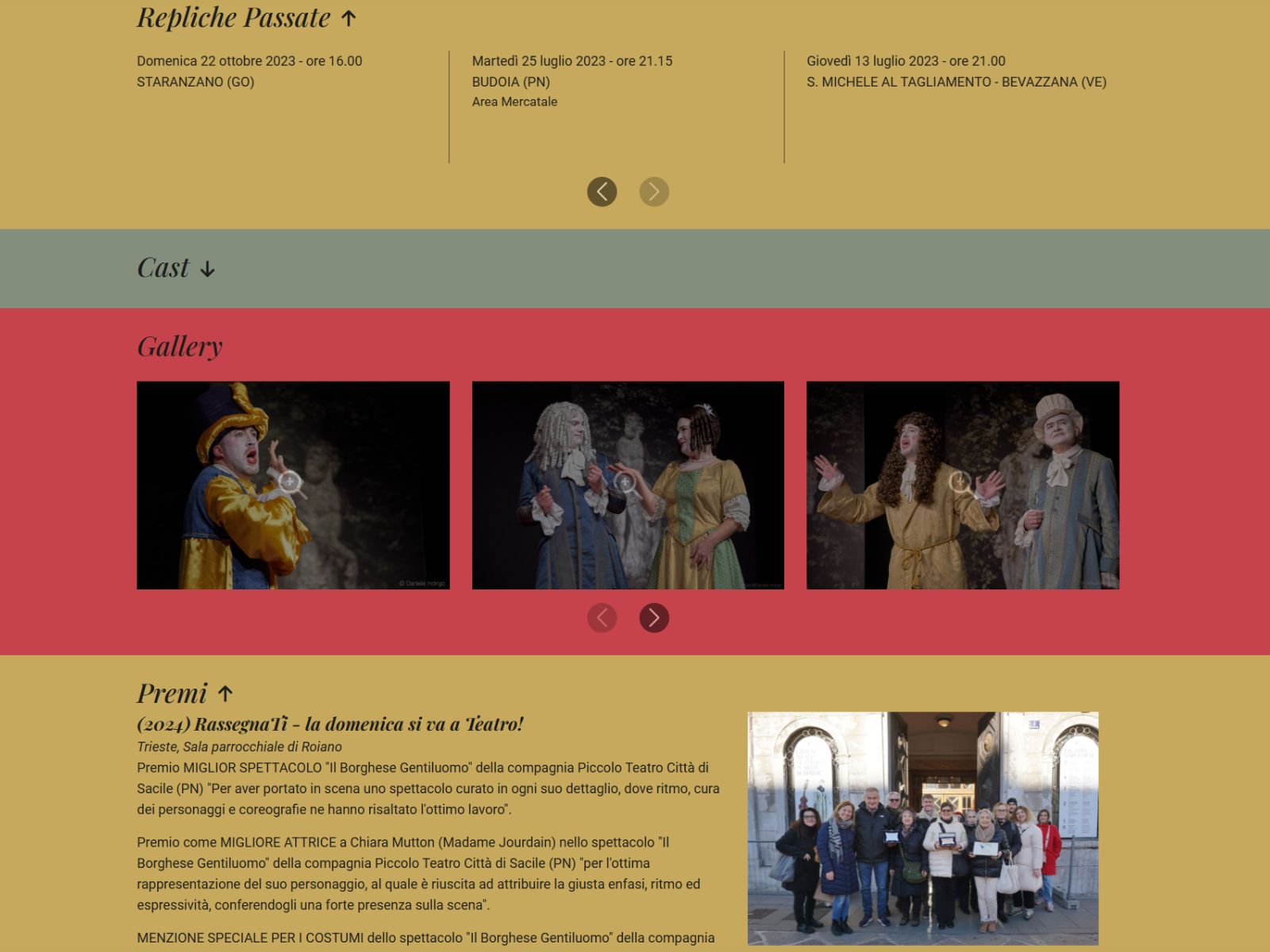 Il sito ospita, inoltre, una sezione specifica dedicata alle Rassegne teatrali, comprese quelle realizzate in collaborazione con altre compagnie teatrali, realtà locali o reti regionali. Questa sezione offre una panoramica sulle progettualità condivise e le sinergie artistiche che animano la scena teatrale del territorio, contribuendo a costruire un racconto collettivo della cultura performativa locale.