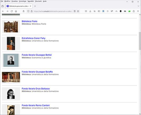 Ad oggi, nelle Biblioteche dell’Università di Udine, si conservano oltre venti fondi librari e collezioni speciali e 4 archivi personali.